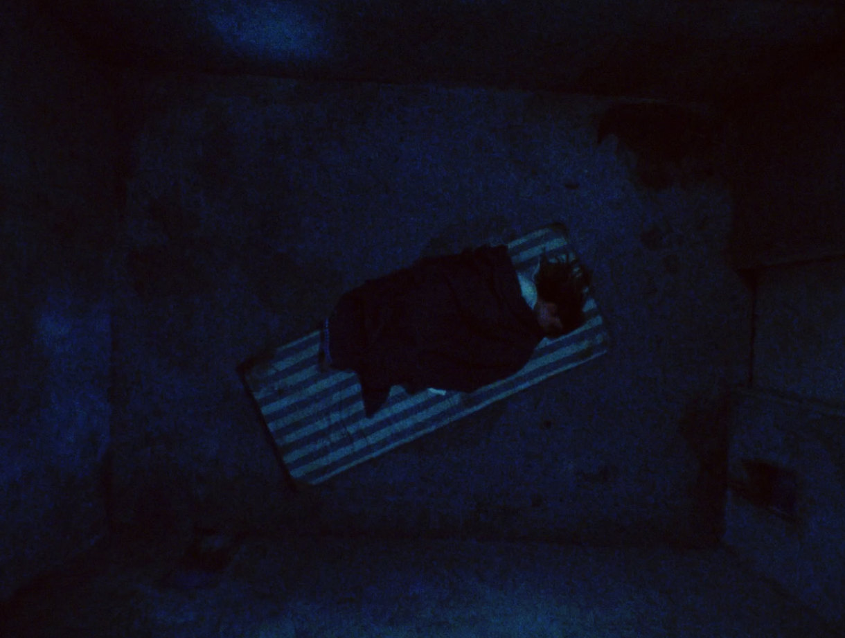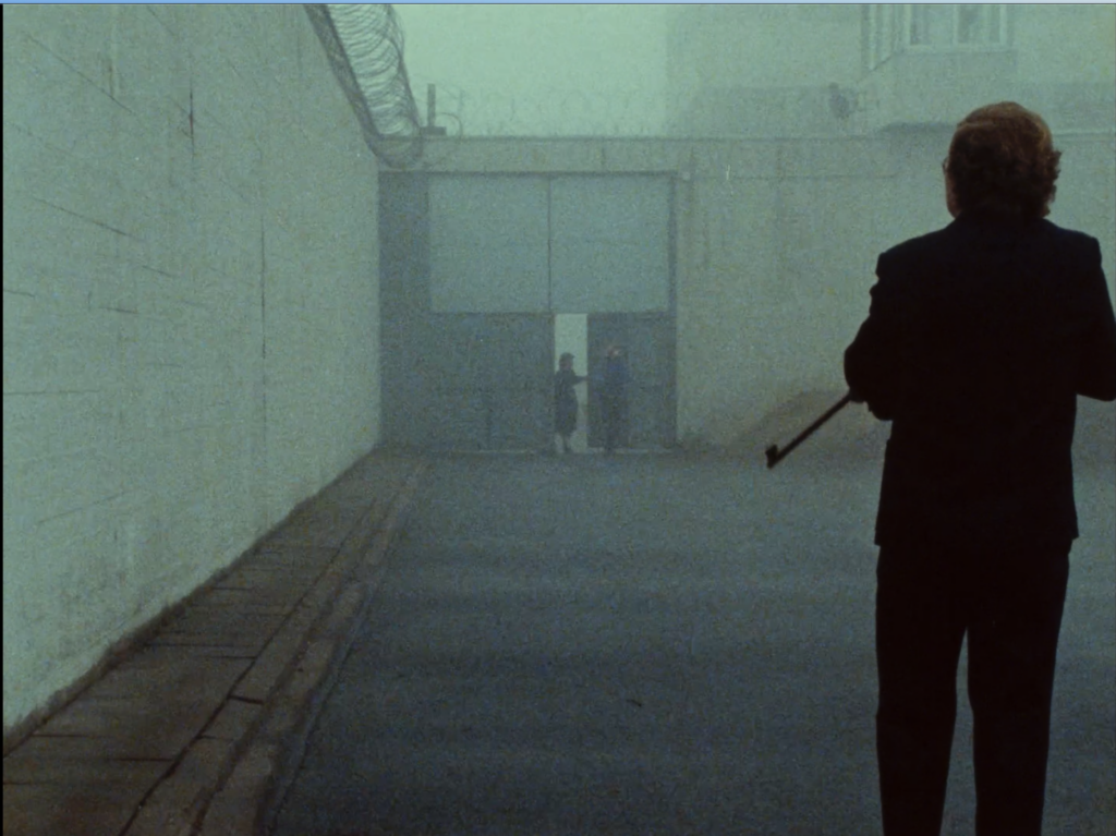 Die Geräusche sind von Anfang an da. Gurrende Tauben mit monotonen Grabgesängen, laute Protestbekundungen einer Unbekannten, scheppernd aus dem Fenster fliegendes Blechgeschirr, das mit lautem Getöse im Hof aufschlägt. Die Geräusche kommen vor dem ersten gesprochenen Satz, der im Gefängnishof auf eine Zuhörerin trifft und sich nicht als Geräusch verliert. Die Kamerabewegung versucht, diesen Tönen nachzuspüren, unruhig bis zur Raserei dann in die Schräglage gekippt oder mit einem Salto auf den Kopf gestellt, allein in der Einzeizelle kreisend um sich selbst.