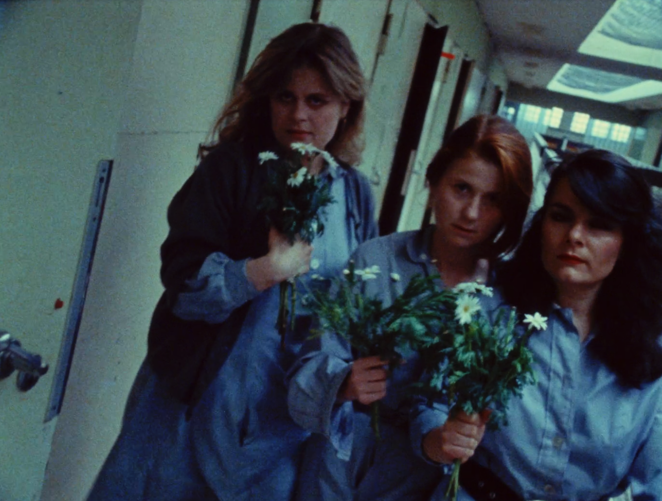 It’s shot almost entirely at a 45-degree angle (…) Czenki’s alter ego Barbara (Pola Kinski) an intelligent actress with a comading emotional range, has been sentenced to seven years for a political crime. Distraught over the separation from her young son, she is nevertheless able to bond with her fellow prisoners: Irmi (Therese Affolter), who drowned her three year old daughter to keep her from being sent to a home, and Micha (Gerlinde Eger) an addict who dreams of release so she can give herself one finalfix. Micha becomes Barbara’s loyal comrade in the militant struggle against the prison’s senselessly repressive rules. Although Accomplices occasionally strays from movie-of-the-weeek formulas, it’s articulate feminist politics and startling characterizations are admirable and moving.