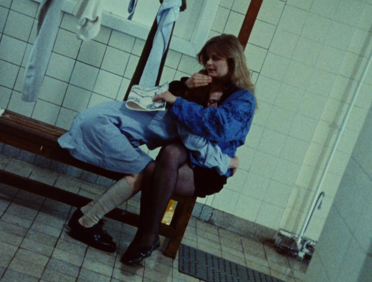 Accomplices is a direct, personal dramatic treatment of the lives of women in prison. Margit Czenki, in her first film, works with material that is all too familiar to her: the former teacher of handicapped children served a five-year prison term for armed robbery as a member of a radical political group (her story was related to Margarethe von Trotta in The Second Awakening of Christa Klages). Pola Kinski portrays Barbara, sentenced to seven years for robbery. After two years in solitary confinement, where she was subject to fits of rage, Barbara begins working in the prison sewing workshop. There she becomes integrated into the world of guilt and anger, as well as the jealousy and hypersensitivity, of the women, many of them mothers, and most of them serving time for murder. Barbara becomes an „accomplice“ in their artful schemes to dodge the prison routine and their own pain.